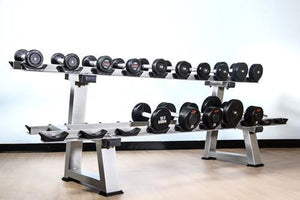 2-Tier Storage Design – Holds up to 10 pairs of round-head dumbbells, maximizing floor space while keeping your weights within reach.
