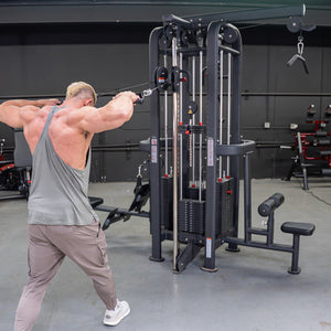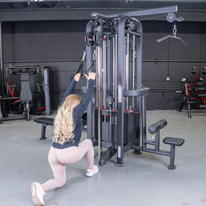 Elevate your fitness to the next level with the Standard 4-Stack Jungle Gym by Muscle D Fitness, a professional-grade multi-station system designed for maximum versatility, durability, and performance. Perfect for home gyms, commercial training facilities, and athletic centers, this powerful system allows you to target every major muscle group efficiently while optimizing space in your workout area. Available in sleek Black or timeless Silver finishes, it not only performs at a professional level but also enhances the aesthetic of any gym environment. Engineered for users of all skill levels, the 4-Stack Jungle Gym provides smooth, precise motion across all stations, ensuring safe, effective, and engaging workouts. Whether your goal is muscle building, strength development, or functional training, this gym delivers everything you need for a complete full-body training experience.