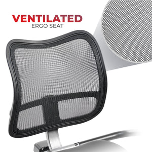 Ventilated, cushioned seat with ergonomic lumbar support for lasting comfort