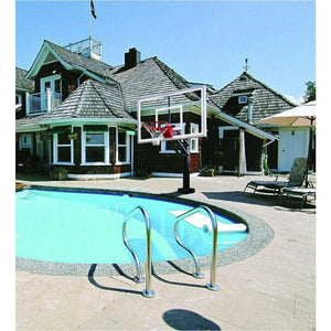 In-ground poolside basketball hoop with Insta-Just height adjustment system