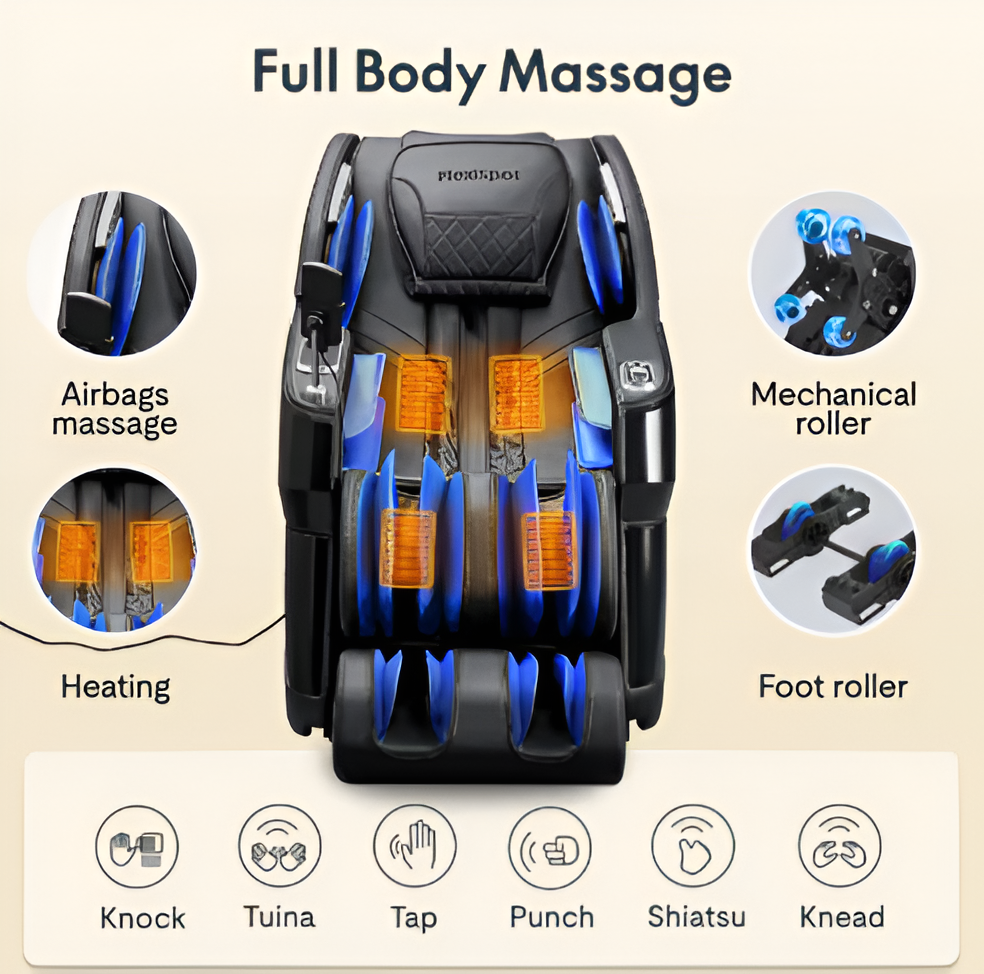 Elevate your home wellness experience with the FlexiSpot OM4 Series Massage Chair, a premium 4D massage recliner engineered to deliver professional-quality relaxation in the comfort of your home. Designed with cutting-edge technology and human-like massage techniques, this chair targets deep fascia, relieves tension, and promotes total body rejuvenation.