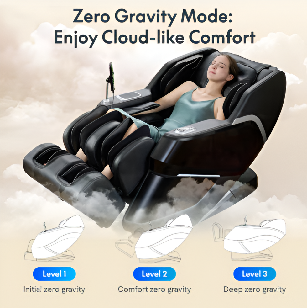 Zero Gravity Recline: 3 recline levels for weightless relaxation.