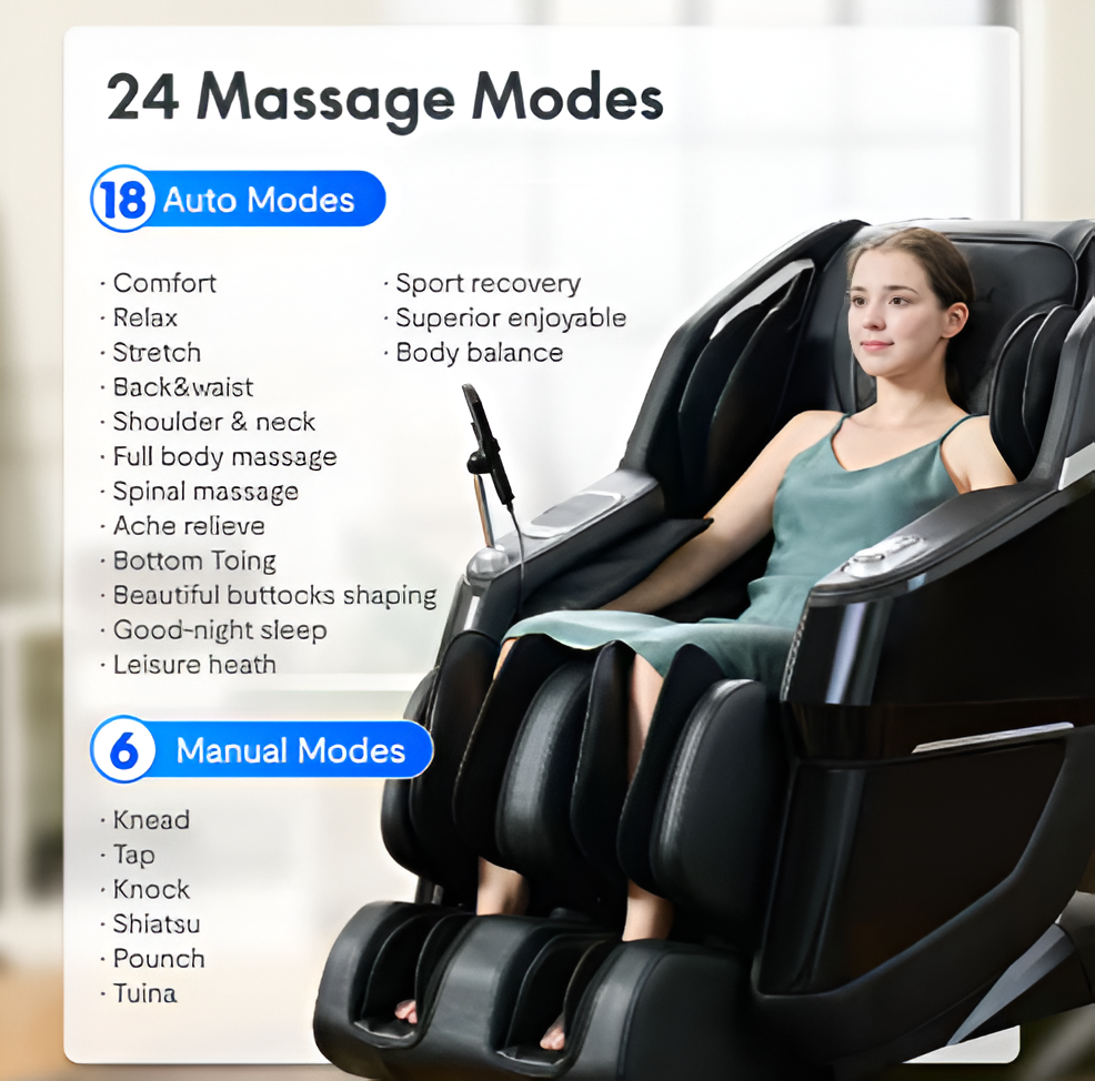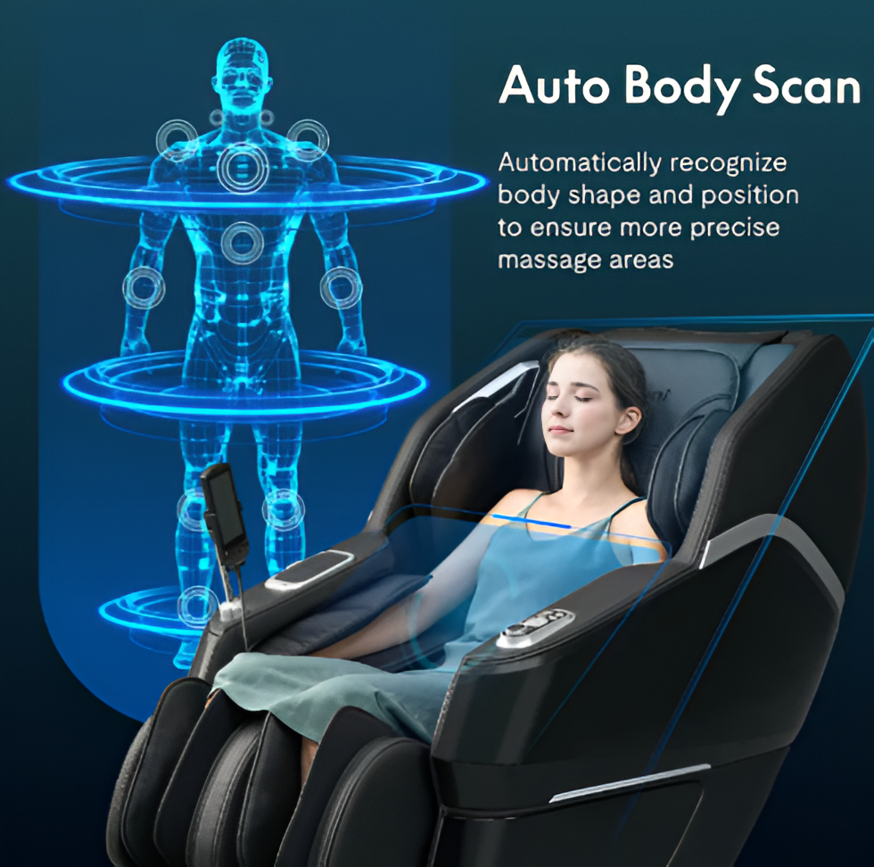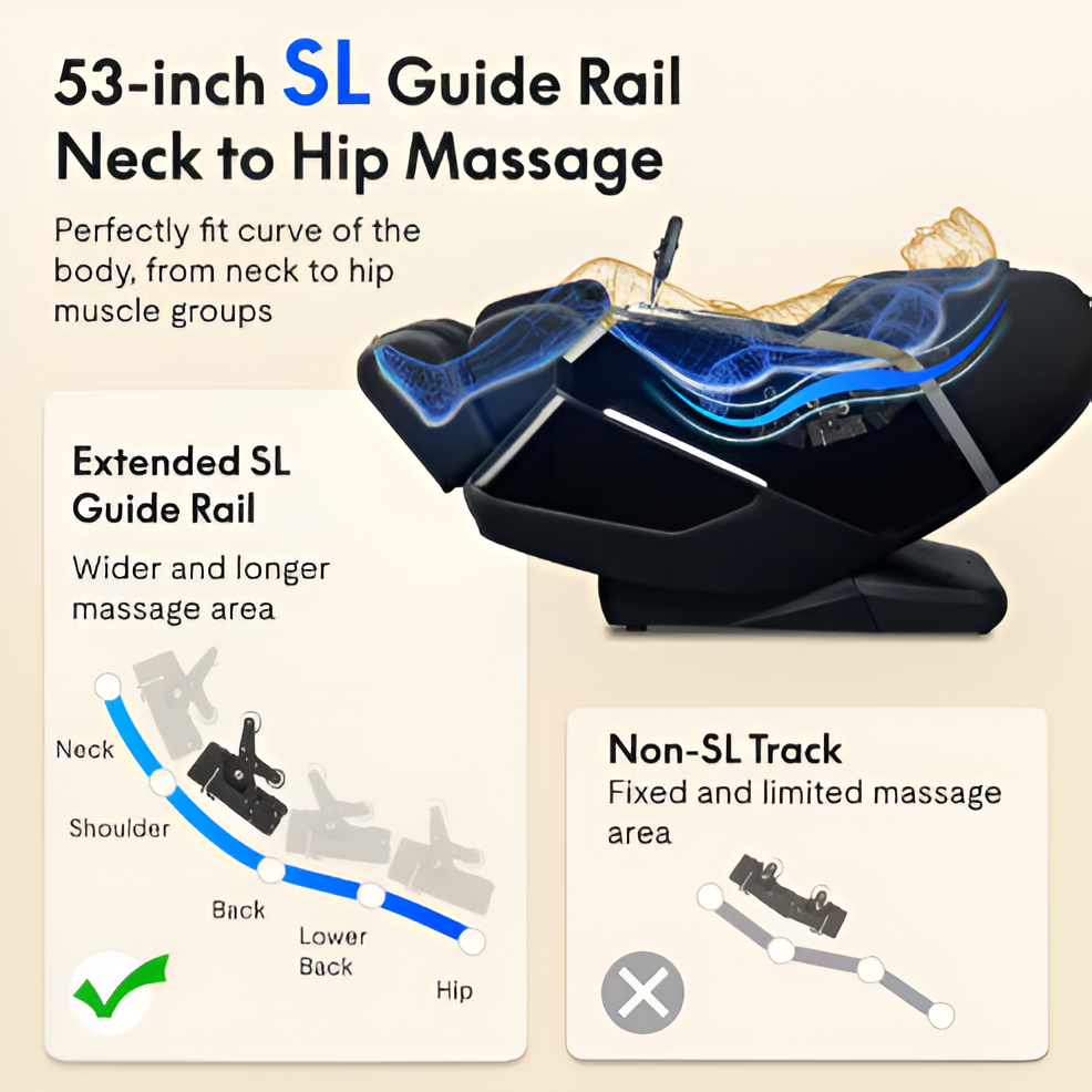 4D SL-Track Massage Mechanism: The advanced 4D SL-Track system ensures a comprehensive massage from your neck to your thighs, adapting to your body's unique contours for a personalized experience.