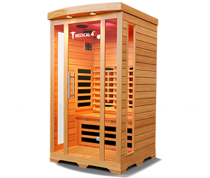 The Medical 4 Infrared Sauna, designed for 2 persons, is a doctor-engineered wellness solution crafted to enhance health through advanced heat therapy. Constructed with natural hemlock wood for durability and skin-cleansing properties, this sauna is built to last over 10 years. The Rapid Internal Heating System allows it to reach optimal temperatures in just 40 minutes, compared to 90 minutes to 2 hours for traditional saunas, ensuring more time for relaxation and healing. With a maximum temperature of 140°F, the full-spectrum infrared technology (near, mid, and far) delivers comprehensive heat to every part of the body, promoting pain relief, muscle recovery, and improved cardiovascular health. The 3D Heat Therapy system enhances range of motion, reduces muscle spasms, and aids in detoxification by removing toxins like BPA, heavy metals, and phthalates. The Skin Rejuvenation/Cleansing System opens pores and increases blood circulation, leaving skin soft and refreshed. The sauna features an oxygen ionizer, chromatic light therapy, and a speaker system for an enhanced experience. Hand-assembled in the USA with a 3-year parts warranty, this easy-to-install sauna is ideal for home use, offering a luxurious and therapeutic escape for couples or small spaces.