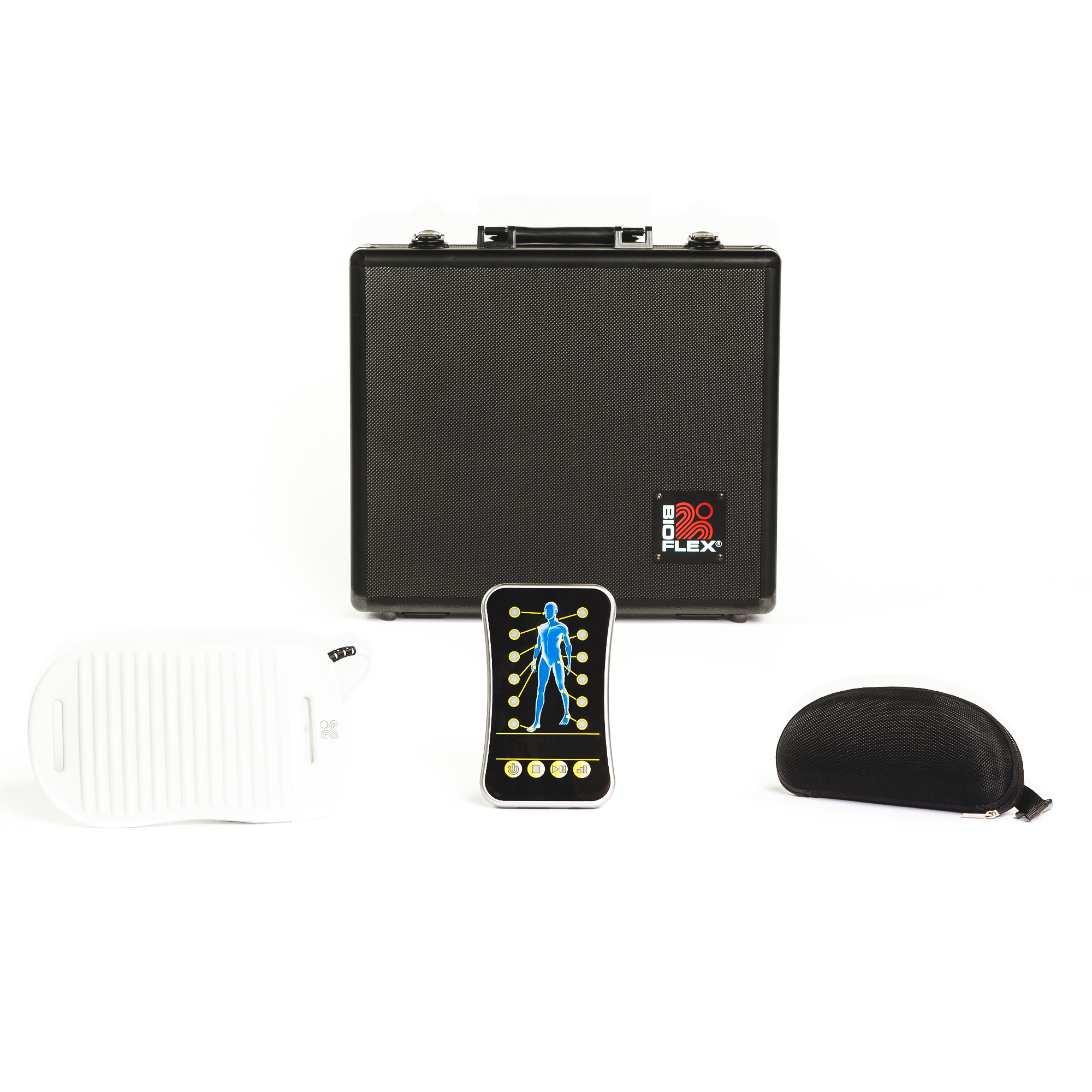 The BIOFLEX P120 Personal Therapy System is a high-performance, FDA-approved red light and infrared therapy device designed to deliver professional-grade results at home. Equipped with a flexible DUOFLEX+120 light treatment array featuring 120 diodes, it emits red light at 660 nm and near-infrared light at 840 nm, ensuring optimal tissue penetration for effective therapy. The system includes innovative protocols for four stages of progression, allowing tailored treatments for musculoskeletal conditions, arthritis, sports injuries, and soft tissue injuries. With a total optical power of 709mW (red) and 1420mW (infrared) and an effective surface area of 109cm², it provides targeted relief for pain, inflammation, and stiffness. The ergonomic design features large, easy-to-use buttons, high-contrast colors, and intuitive controls with pause and stop functions for user safety. Visual and audio cues guide users through treatment sessions, and treatment tracking technology ensures consistent results. The system promotes pain relief, faster muscle recovery, reduced inflammation, and improved skin health through collagen production, while also enhancing sleep quality and reducing stress. Its compact and portable design, measuring 18 x 11-3/8 x 12-13/16 inches and weighing 16.5 lbs, makes it ideal for home or travel use. The P120 comes with a controller, DUOFLEX+120 array, power supply, treatment array cable, treatment strap, protective case, and product manual.