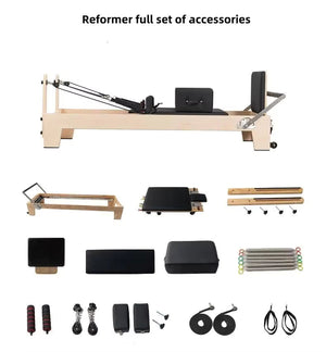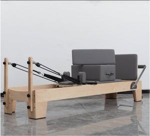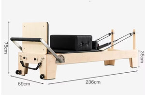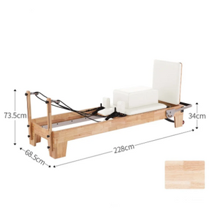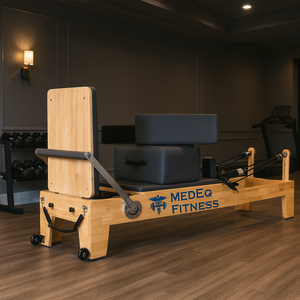The MedEq Fitness Classic Wooden Pilates Reformer is a premium studio-grade apparatus designed for precision, performance, and elegant craftsmanship. Constructed from solid oak and rubber wood, this reformer delivers quiet, smooth operation, versatile spring resistance, and a complete accessory suite to support all skill levels—from beginner to professional athletes.