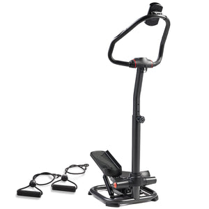 Maximize your home workouts with the Sunny Health & Fitness Power Stepper with Resistance Bands and Handlebar. This all-in-one compact cardio solution targets your legs, core, and upper body with a low-impact stepping motion and integrated resistance bands.