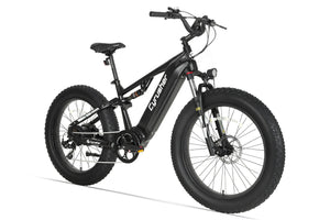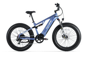 Optimized for long-distance exploration, the Cyrusher Rover is powered by a high-capacity 52V 15.6Ah lithium battery, supporting journeys of up to 62 miles on a single charge. The bike features a heavy-duty full-suspension system, combining an adjustable oil-and-spring front fork with a 165mm rear oil spring shock. This dual-suspension architecture, paired with massive 26x4.0-inch puncture-resistant fat tires, creates a "float-like" ride quality that neutralizes vibrations on sand, snow, gravel, and rough city pavement. With a 350 lb payload capacity and a sporty 6061 aluminum alloy frame, the Cyrusher Rover is built to handle the most demanding rider requirements and heavy gear loads.