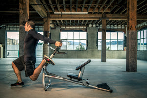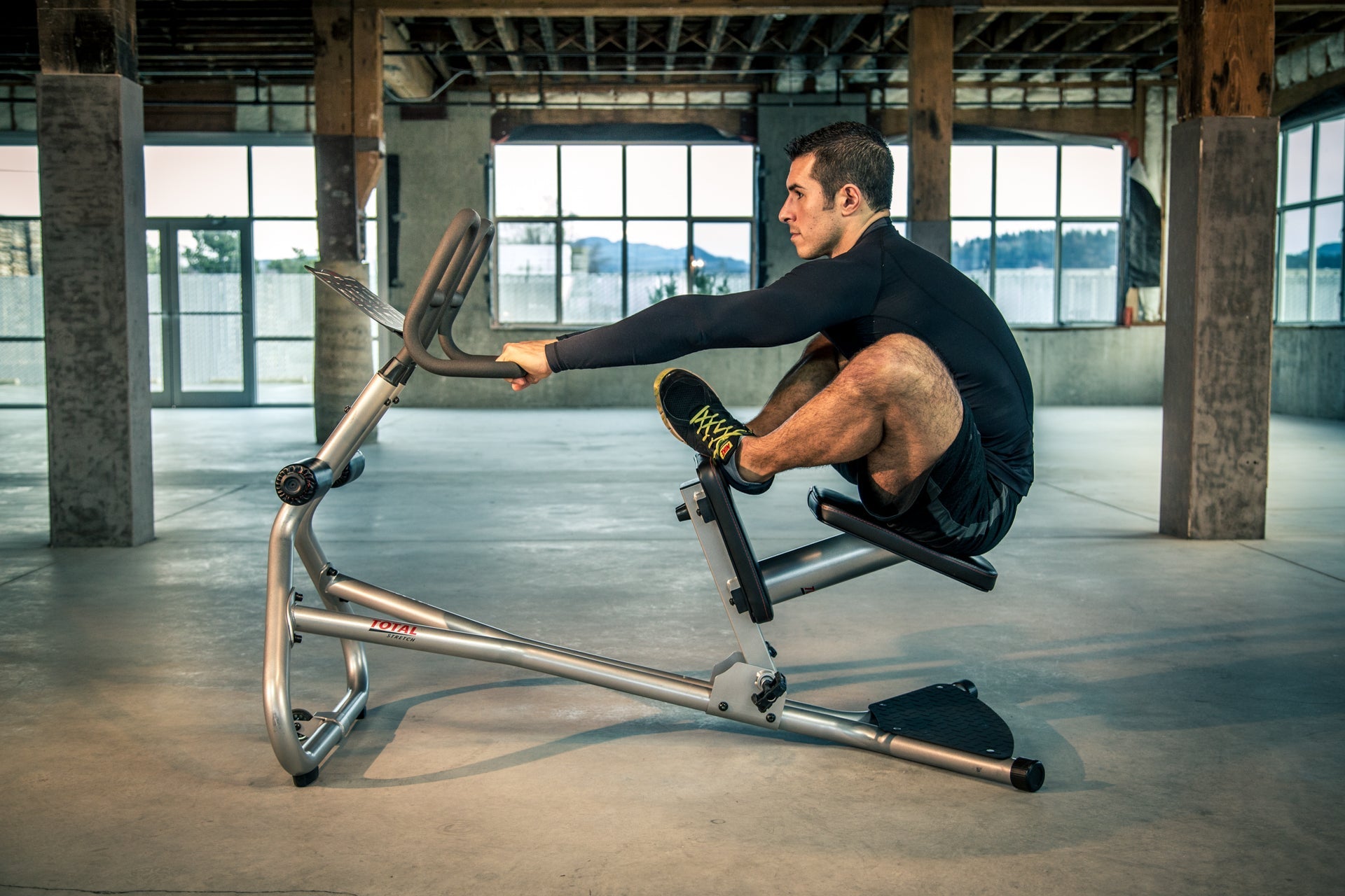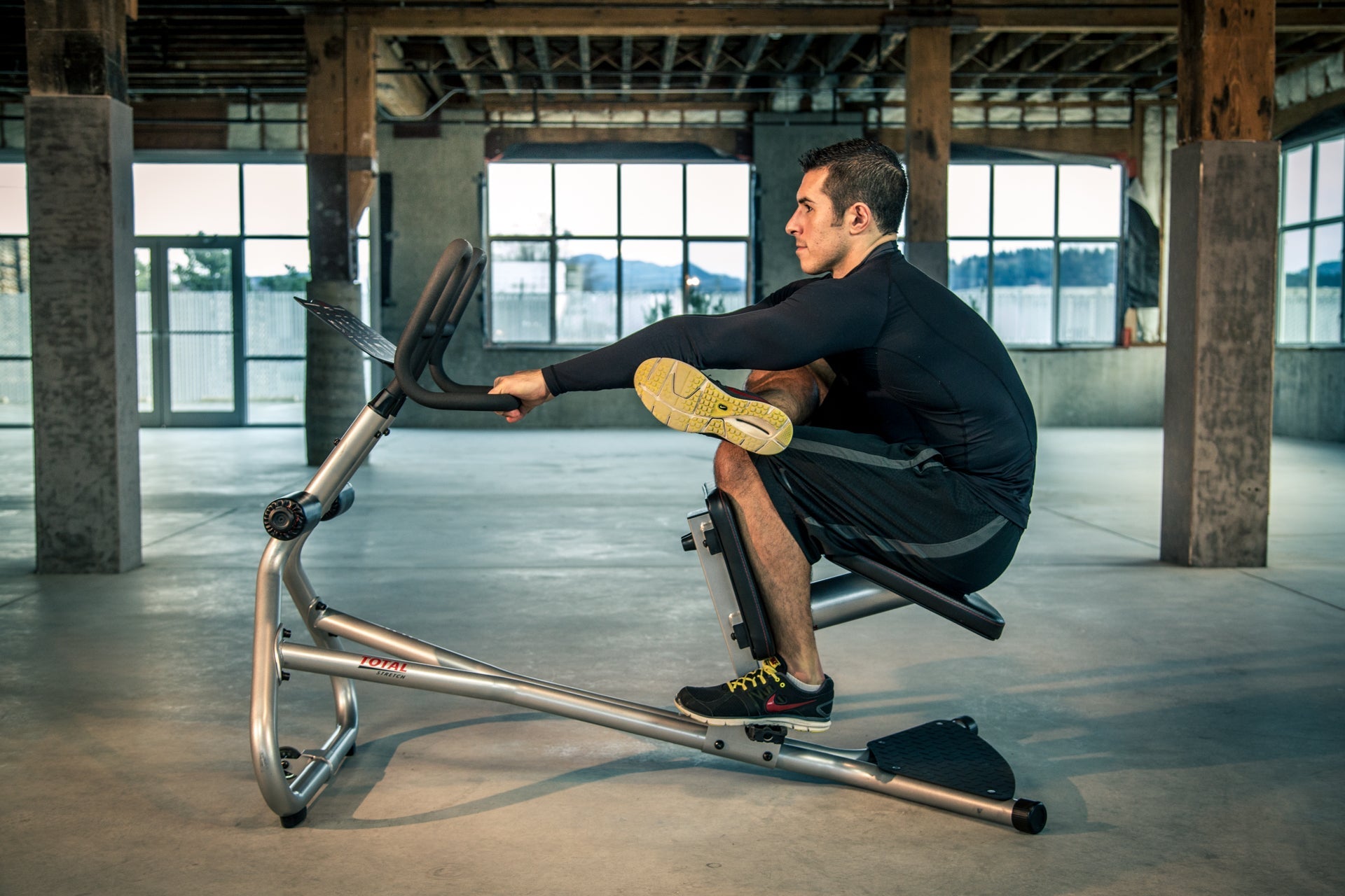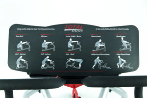 The Motive Fitness TotalStretch TS200 is a commercial-grade stretching machine designed for heavy-duty use in fitness facilities and home gyms. It allows users to perform a comprehensive set of stretches safely and effectively, targeting multiple muscle groups in one compact unit. Whether seated or standing, from the front or back, this machine supports a variety of stretches to improve flexibility, enhance athletic performance, prevent injuries, and relieve back pain. The ErgoStretch handlebar system offers multiple grip points to accommodate users of all sizes, ensuring a biomechanically correct angle for effective hamstring and lower body stretches. The ErgoStretch platform stabilizes users for precise lower leg stretches, while the ErgoStretch rollers provide comfortable leg stabilization for both seated and standing positions. A padded seat and leg pad ensure comfort and proper positioning during seated stretches. The included placard guides users through a 10-stretch total body circuit, making it easy to follow a structured stretching routine. With a sturdy steel frame and wheels for easy mobility, the TS200 is built to withstand frequent use while remaining portable. Assembly is straightforward, taking approximately 45 minutes, and the machine weighs 88 pounds with dimensions of 59 inches long, 29 inches wide, and 40 inches high.