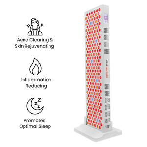 The Vital Elite 2.0 is a professional-grade full-body red and near-infrared light therapy panel engineered for serious wellness users, athletes, and anyone committed to recovery, skin health, and long-term vitality. Its advanced multi-wavelength system includes nine calibrated light spectrums — 480, 590, 630, 660, 670, 810, 830, 850, and 1060 nm — delivering a comprehensive treatment that penetrates from the skin’s surface down to deep tissues.